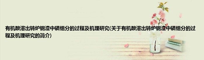 本文关于有机酸溶出转炉钢渣中磷组分的过程及机理研究的简介就讲解完毕,希望对大家有所帮助。