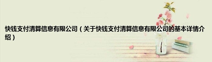 本文关于快钱支付清算信息有限公司的基本详情介绍就讲解完毕,希望对大家有所帮助。