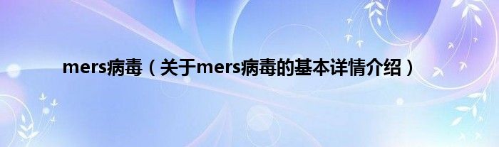 本文关于mers病毒的基本详情介绍就讲解完毕,希望对大家有所帮助。