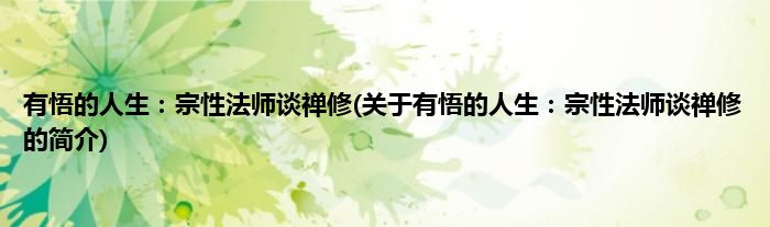 本文关于有悟的人生:宗性法师谈禅修的简介就讲解完毕,希望对大家有所帮助。