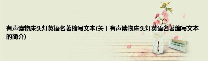 大家好,有声读物床头灯英语名著缩写文本,关于有声读物床头灯英语名著缩写文本的简介很多人还不知道,现在让我们一起来看看吧!