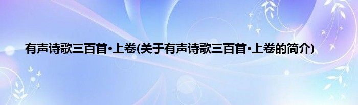 本文关于有声诗歌三百首·上卷的简介就讲解完毕,希望对大家有所帮助。