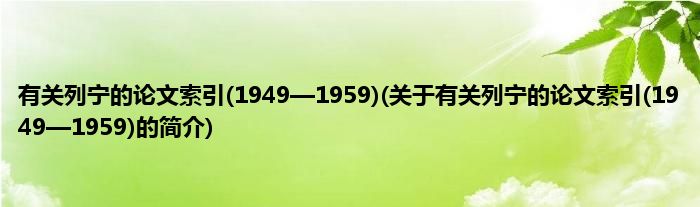 本文关于有关列宁的论文索引(1949—1959)的简介就讲解完毕,希望对大家有所帮助。
