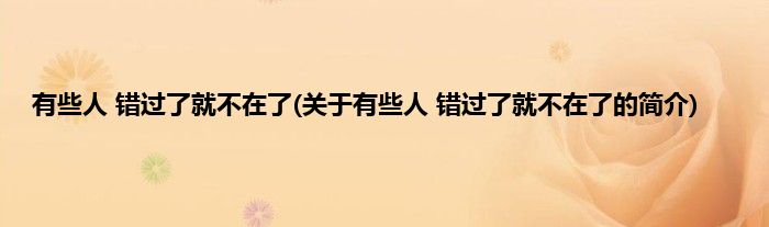 大家好,有些人,错过了就不在了,关于有些人,错过了就不在了的简介很多人还不知道,现在让我们一起来看看吧!