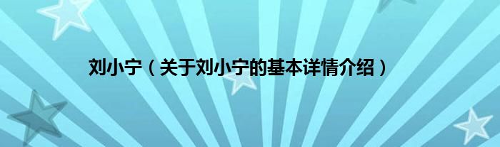 本文关于刘小宁的基本详情介绍就讲解完毕,希望对大家有所帮助。