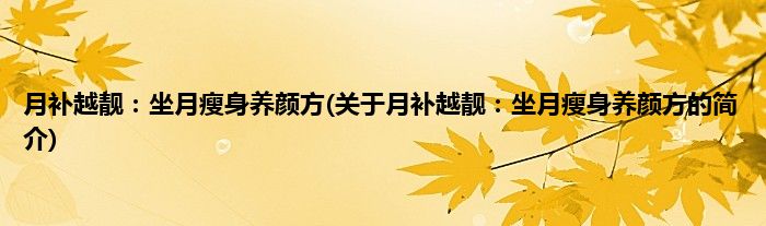 本文关于月补越靓:坐月瘦身养颜方的简介就讲解完毕,希望对大家有所帮助。