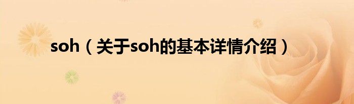 大家好我是小蝌蚪,soh,关于soh的基本详情介绍很多人还不知道,那么现在让我们一起来看看吧!