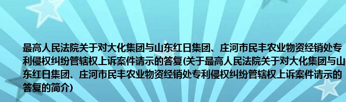 本文关于最高人民法院关于对大化集团与山东红日集团、庄河市民丰农业物资经销处专利侵权纠纷管辖权上诉案件请示的答复的简介就讲解完毕,希望对大家有所帮助。