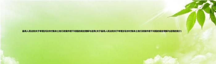 本文关于最高人民法院关于审理涉及农村集体土地行政案件若干问题的规定理解与适用的简介就讲解完毕,希望对大家有所帮助。