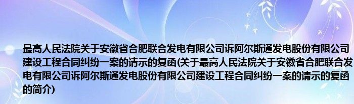 本文关于最高人民法院关于安徽省合肥联合发电有限公司诉阿尔斯通发电股份有限公司建设工程合同纠纷一案的请示的复函的简介就讲解完毕,希望对大家有所帮助。