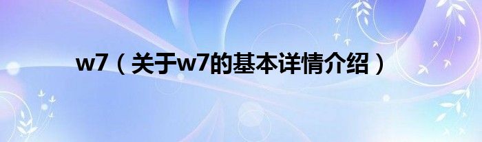 大家好我是小蝌蚪,w7,关于w7的基本详情介绍很多人还不知道,那么现在让我们一起来看看吧!