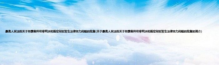 1、 《最高人民法院关于刑事案件终审判决和裁定何时发生法律效力问题的批复》是有的法院反映,关于刑事案件终审判决和裁定何时发生法律效力问题不明确,经研究下发的批复。