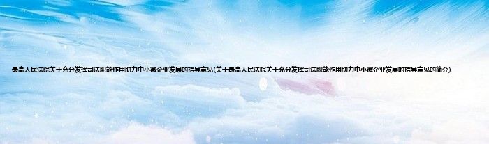 最高人民法院关于充分发挥司法职能作用助力中小微企业发展的指导意见(关于最高人民法院关于充分发挥司法职能作用助力中小微企业发展的指导意见的简介)