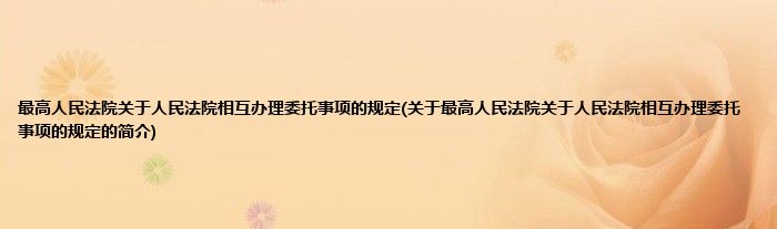 大家好,最高人民法院关于人民法院相互办理委托事项的规定,关于最高人民法院关于人民法院相互办理委托事项的规定的简介很多人还不知道,现在让我们一起来看看吧!