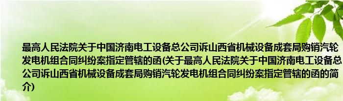 本文关于最高人民法院关于中国济南电工设备总公司诉山西省机械设备成套局购销汽轮发电机组合同纠纷案指定管辖的函的简介就讲解完毕,希望对大家有所帮助。