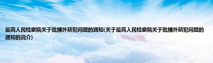 本文关于最高人民检察院关于批捕外籍犯问题的通知的简介就讲解完毕,希望对大家有所帮助。
