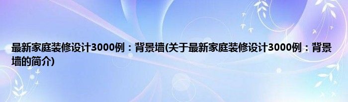 本文关于最新家庭装修设计3000例:背景墙的简介就讲解完毕,希望对大家有所帮助。