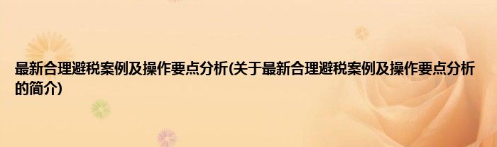 本文关于最新合理避税案例及操作要点分析的简介就讲解完毕,希望对大家有所帮助。