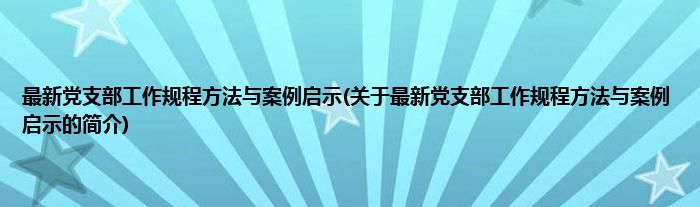 本文关于最新党支部工作规程方法与案例启示的简介就讲解完毕,希望对大家有所帮助。