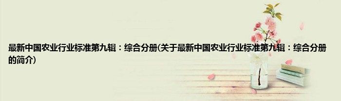 本文关于最新中国农业行业标准第九辑:综合分册的简介就讲解完毕,希望对大家有所帮助。