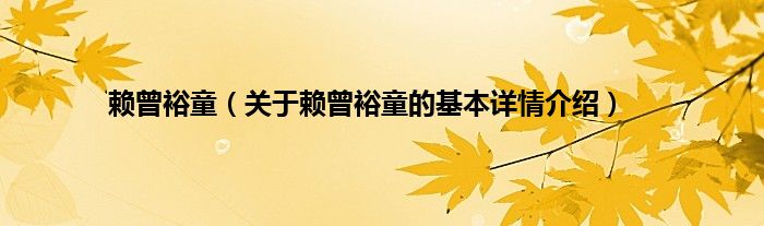 本文关于赖曾裕童的基本详情介绍就讲解完毕,希望对大家有所帮助。