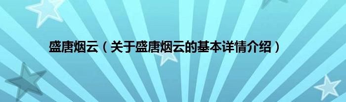 本文关于盛唐烟云的基本详情介绍就讲解完毕,希望对大家有所帮助。