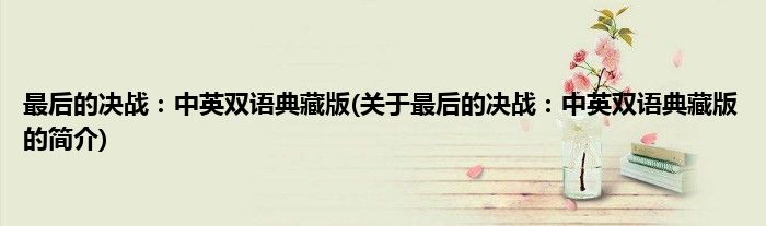 本文关于最后的决战:中英双语典藏版的简介就讲解完毕,希望对大家有所帮助。