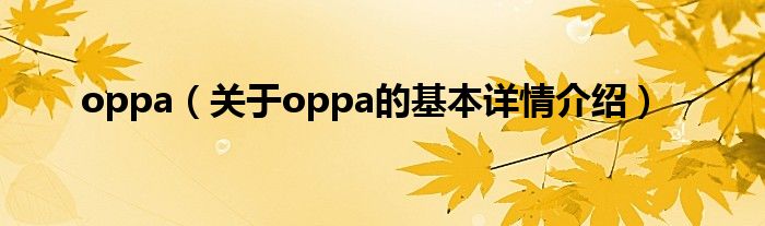 本文关于oppa的基本详情介绍就讲解完毕,希望对大家有所帮助。