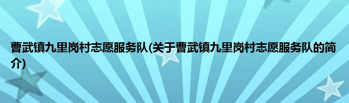 大家好,曹武镇九里岗村志愿服务队,关于曹武镇九里岗村志愿服务队的简介很多人还不知道,现在让我们一起来看看吧!