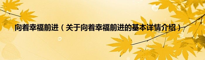 本文关于向着幸福前进的基本详情介绍就讲解完毕,希望对大家有所帮助。