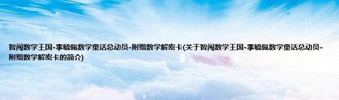 本文关于智闯数学王国-李毓佩数学童话总动员-附赠数学解密卡的简介就讲解完毕,希望对大家有所帮助。