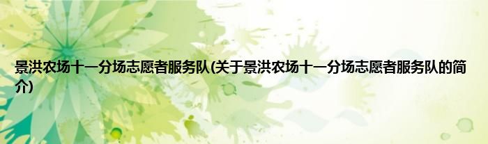 本文关于景洪农场十一分场志愿者服务队的简介就讲解完毕,希望对大家有所帮助。