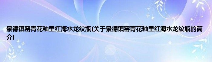 本文关于景德镇窑青花釉里红海水龙纹瓶的简介就讲解完毕,希望对大家有所帮助。