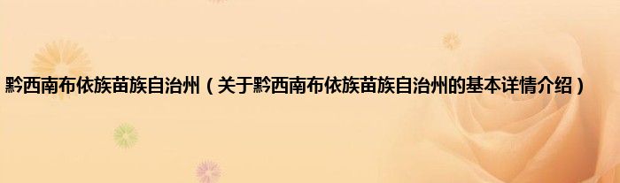 本文关于黔西南布依族苗族自治州的基本详情介绍就讲解完毕,希望对大家有所帮助。