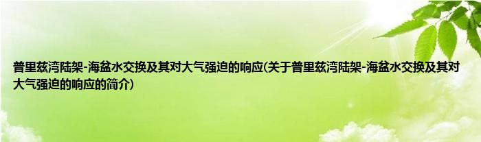 本文关于普里兹湾陆架-海盆水交换及其对大气强迫的响应的简介就讲解完毕,希望对大家有所帮助。