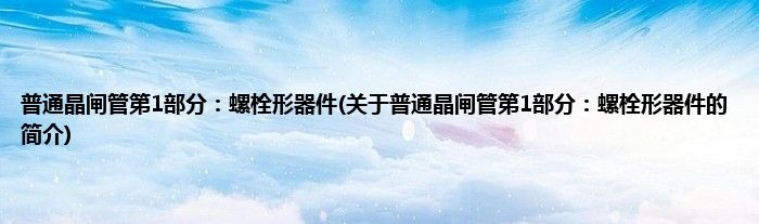1、 《普通晶闸管第1部分:螺栓形器件》是2013年9月1日实施的一项行业标准。