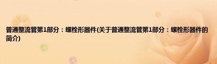 1、 《普通整流管第1部分:螺栓形器件》是2013年9月1日实施的一项行业标准。