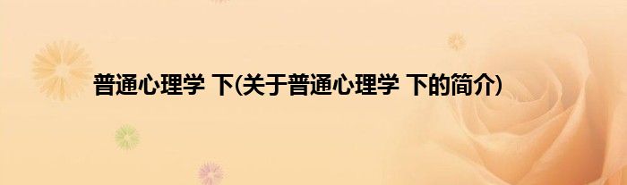 本文关于普通心理学 下的简介就讲解完毕,希望对大家有所帮助。