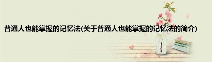 大家好,普通人也能掌握的记忆法,关于普通人也能掌握的记忆法的简介很多人还不知道,现在让我们一起来看看吧!