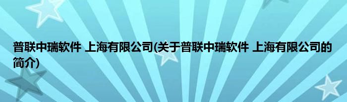 大家好,普联中瑞软件 上海有限公司,关于普联中瑞软件 上海有限公司的简介很多人还不知道,现在让我们一起来看看吧!