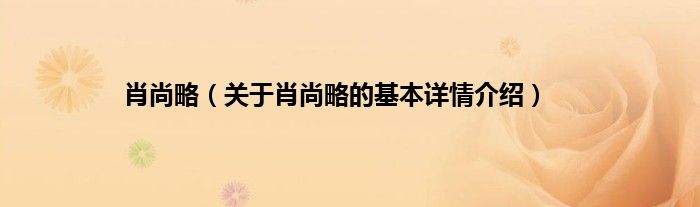 本文关于肖尚略的基本详情介绍就讲解完毕,希望对大家有所帮助。