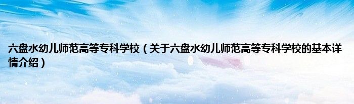 六盘水幼儿师范高等专科学校(关于六盘水幼儿师范高等专科学校的基本详情介绍)