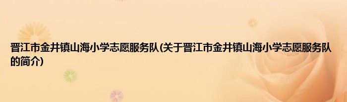 本文关于晋江市金井镇山海小学志愿服务队的简介就讲解完毕,希望对大家有所帮助。