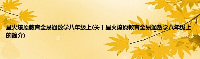 本文关于星火燎原教育全易通数学八年级上的简介就讲解完毕,希望对大家有所帮助。