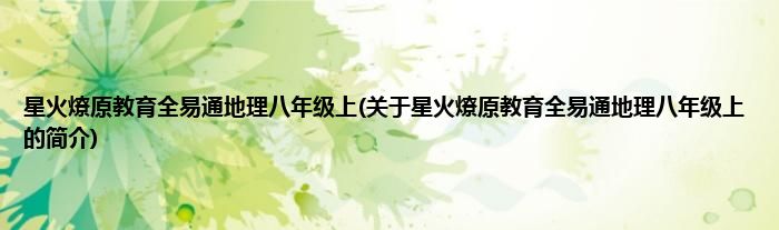 本文关于星火燎原教育全易通地理八年级上的简介就讲解完毕,希望对大家有所帮助。