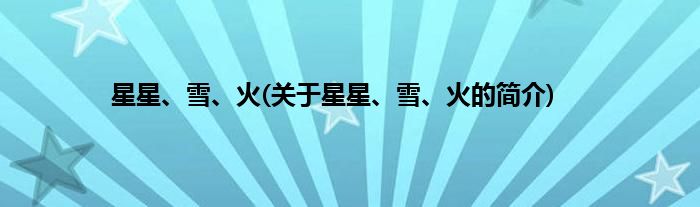 大家好,星星、雪、火,关于星星、雪、火的简介很多人还不知道,现在让我们一起来看看吧!