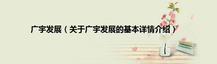 大家好我是小蝌蚪,广宇发展,关于广宇发展的基本详情介绍很多人还不知道,那么现在让我们一起来看看吧!