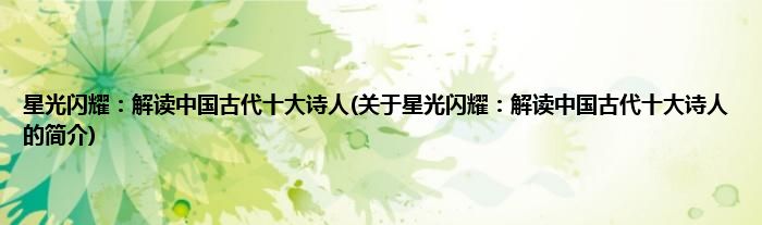 大家好,星光闪耀:解读中国古代十大诗人,关于星光闪耀:解读中国古代十大诗人的简介很多人还不知道,现在让我们一起来看看吧!