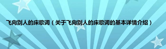 本文关于飞向别人的床歌词的基本详情介绍就讲解完毕,希望对大家有所帮助。