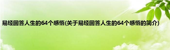 本文关于易经回答人生的64个感悟的简介就讲解完毕,希望对大家有所帮助。